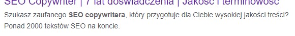Jeżeli chcesz mieć większą pewność, że Twoją strona będzie wyświetlać się w wyszukiwarce tak jak powinna – poświęć parę minut na przygotowanie krótkiego tekstu lub zleć to zadanie copywriterowi.